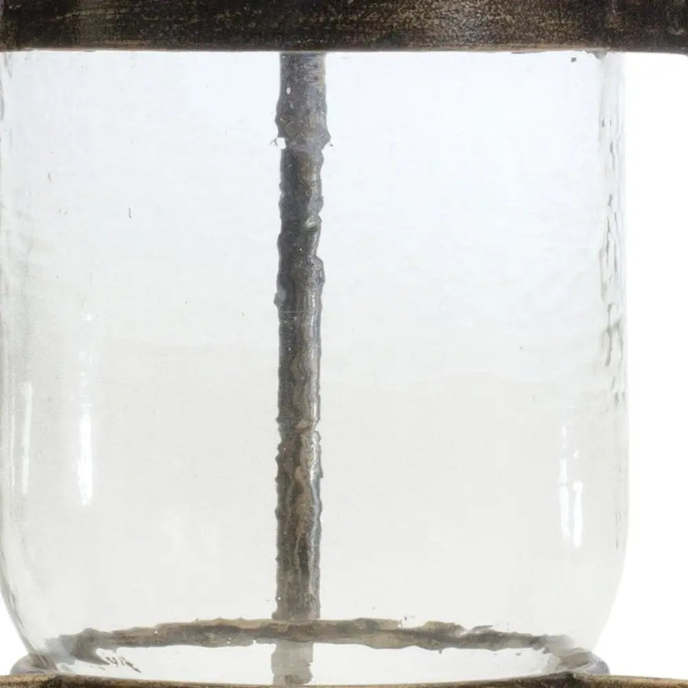 14" Bronze And Clear Glass And Metal Tabletop Hurricane Candle Holder
