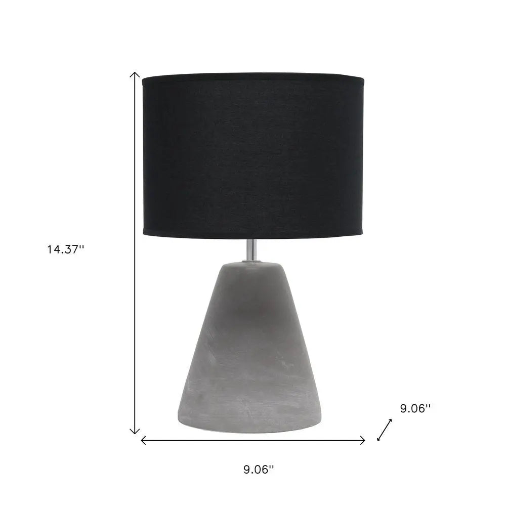 14" Gray Concrete Novelty Table Lamp With Black Drum Shade