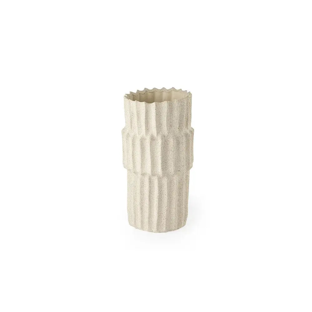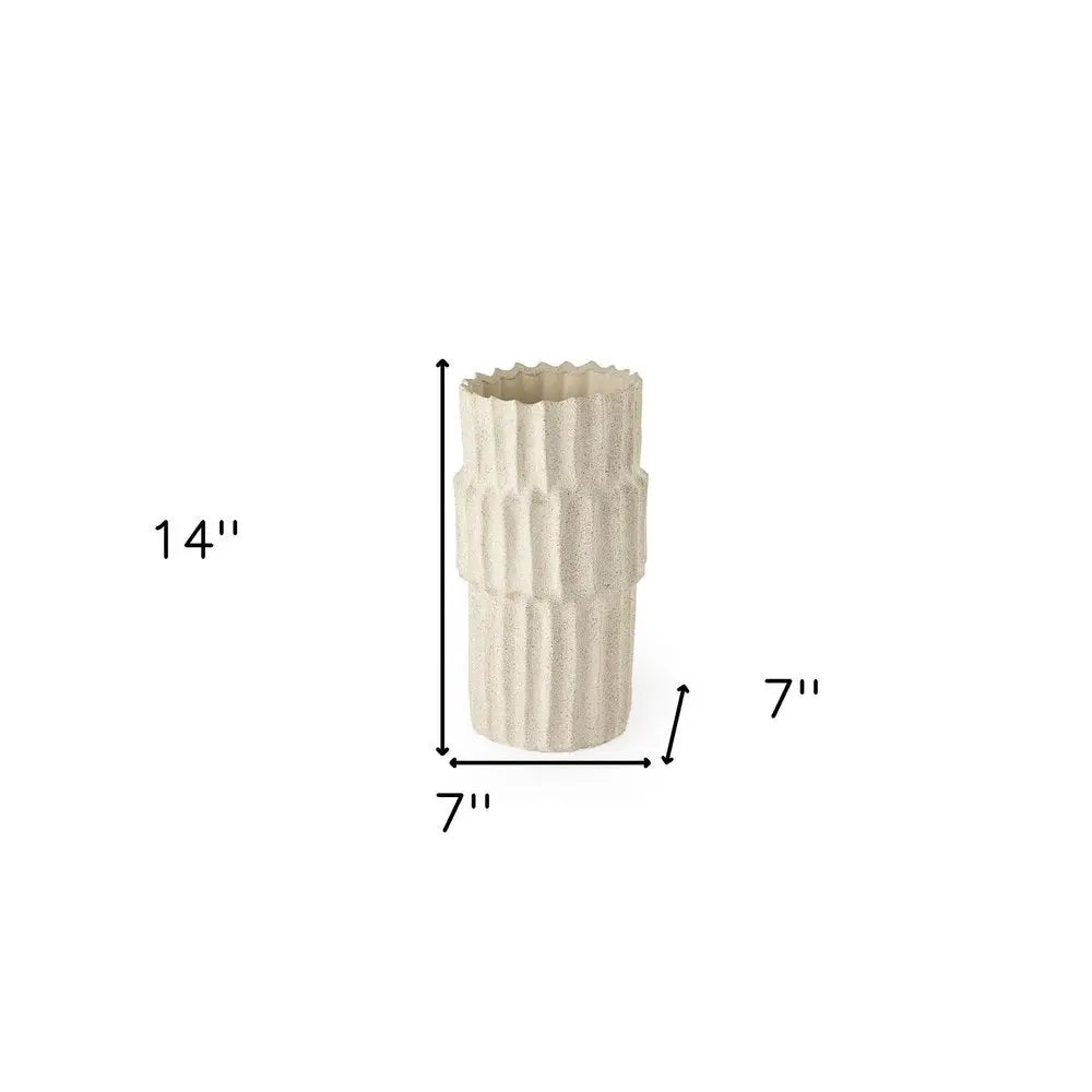 14" Sand Organic Textured Ceramic Cylinder Table Vase