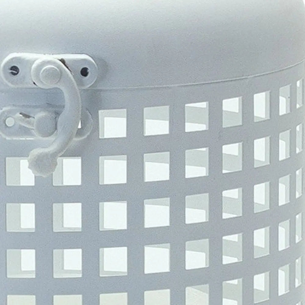 14" White Distressed Lattice Iron Floor Lantern Candle Holder