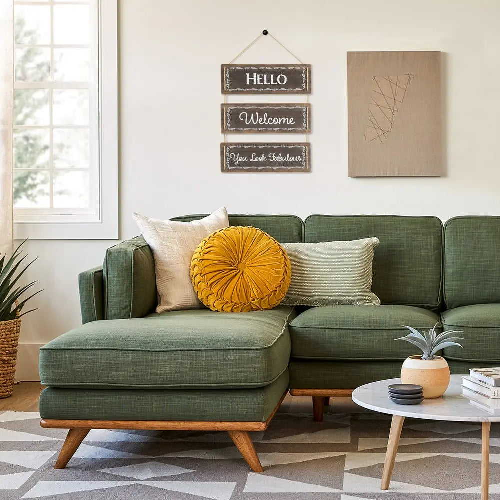 14" X 12" Brown And White "HELLO WELCOME NICE TO SEE YOU", "HELLO WELCOME YOU LOOK FABULOUS" Wood Wall Decor