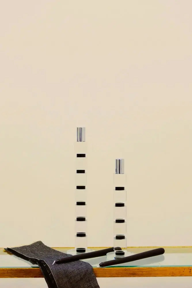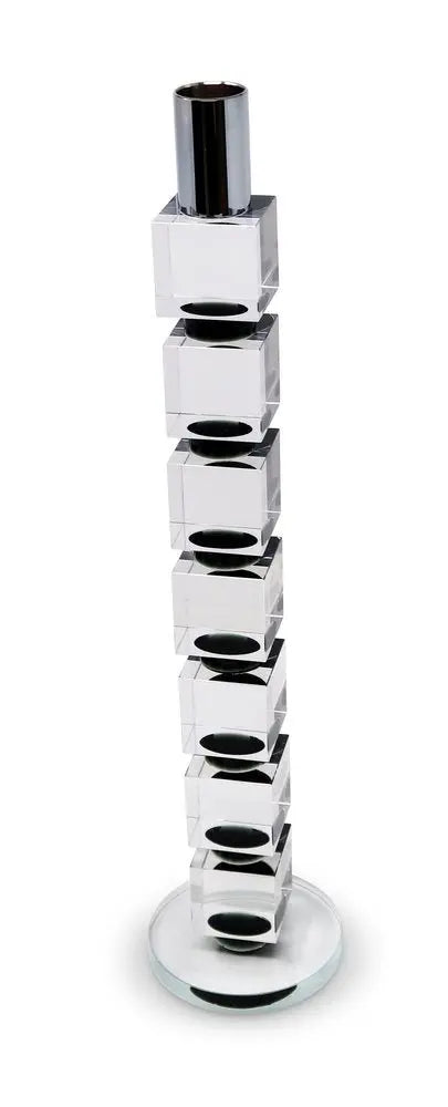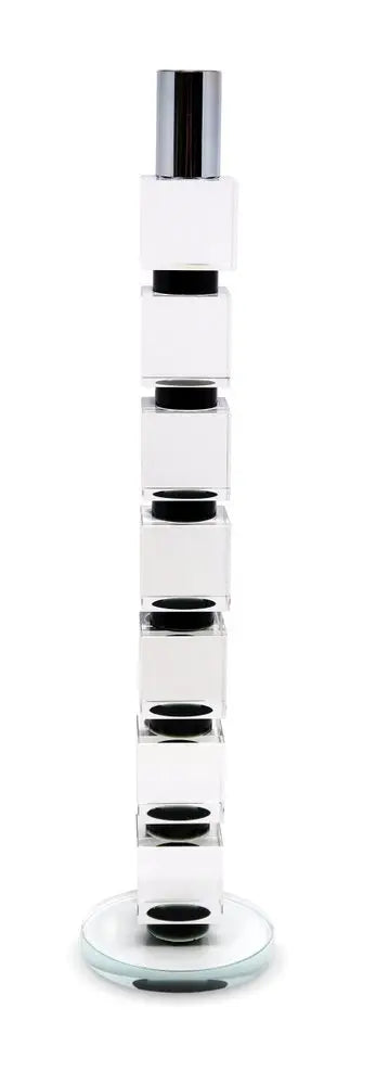 15" Silver Clear And Black Crystal Tabletop Taper Candlestick