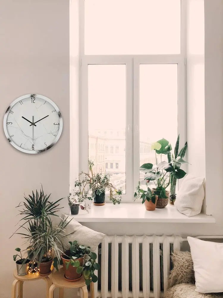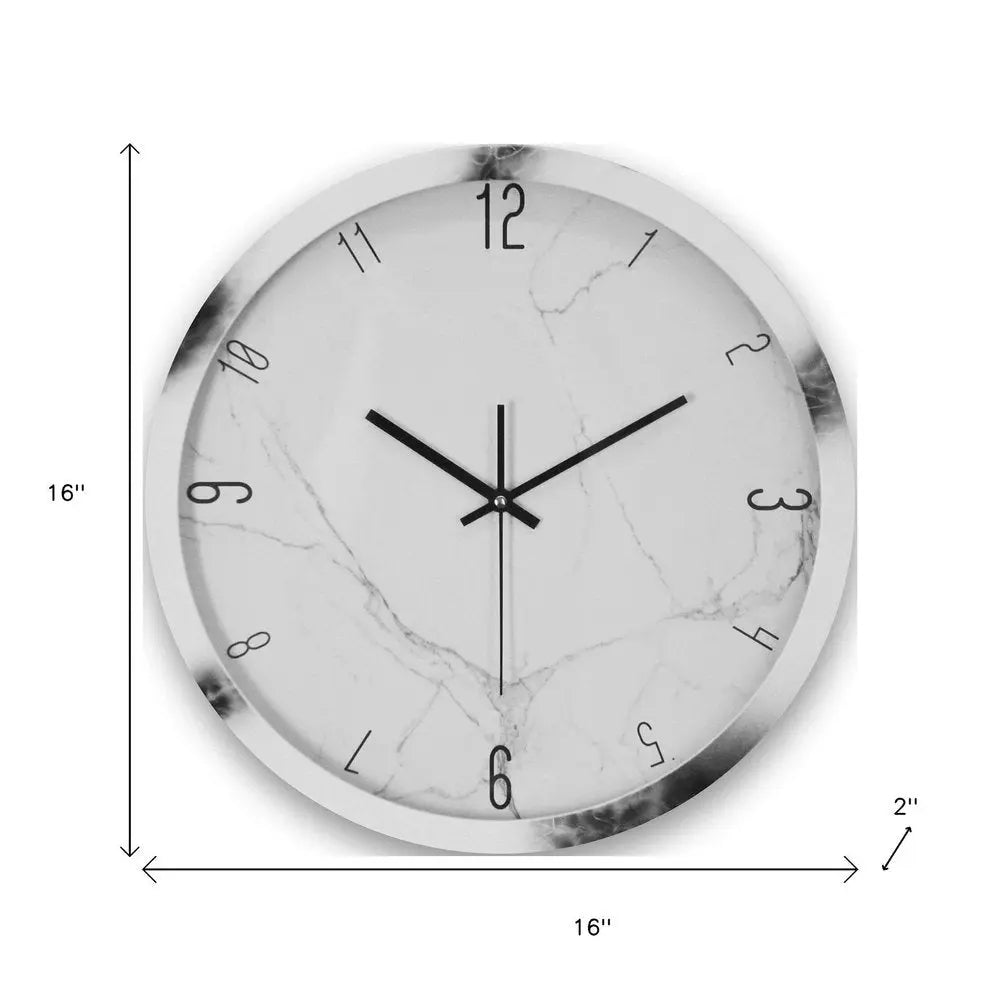 16" White And Black Heavy Duty Plastic Silent Analog Marble Round Wall Clock