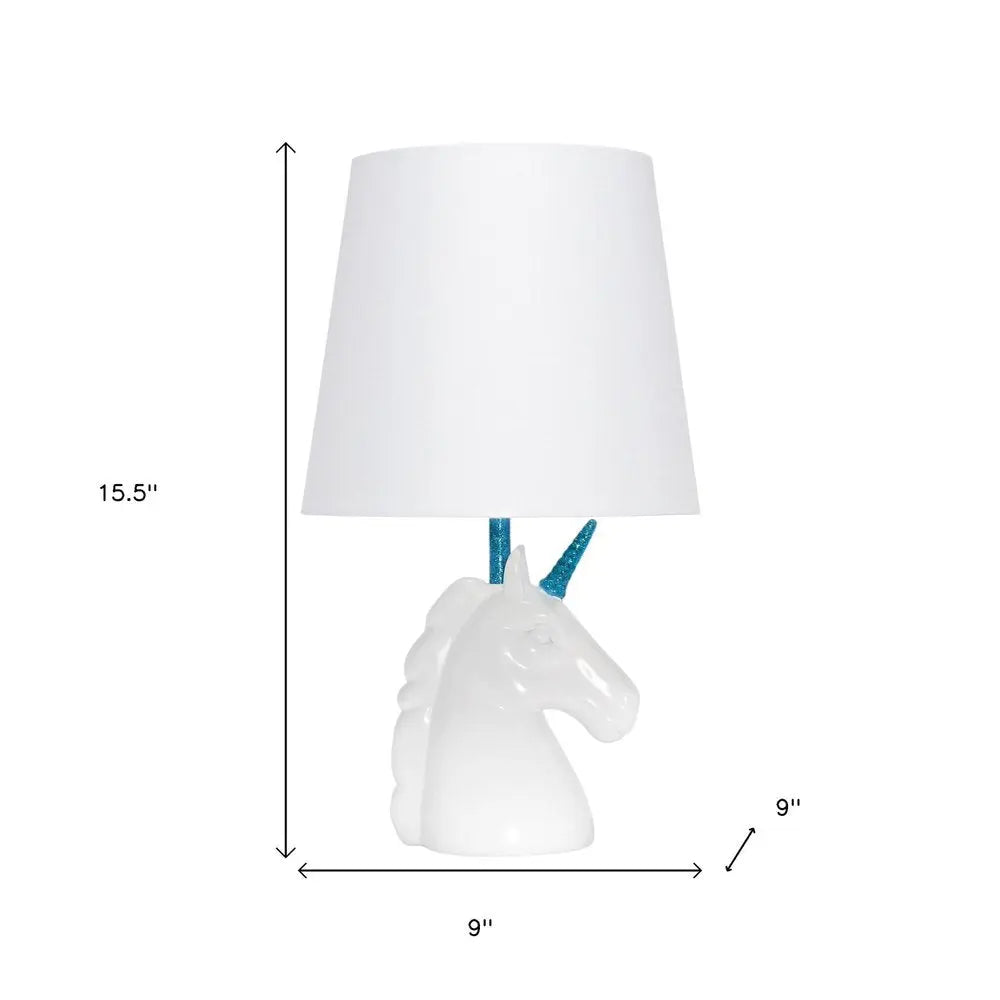 16" White And Blue Novelty Table Lamp LED With White Drum Shade
