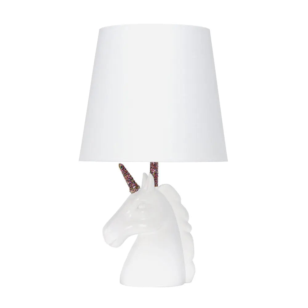 16" White And Rainbow Novelty Table Lamp With White Drum Shade