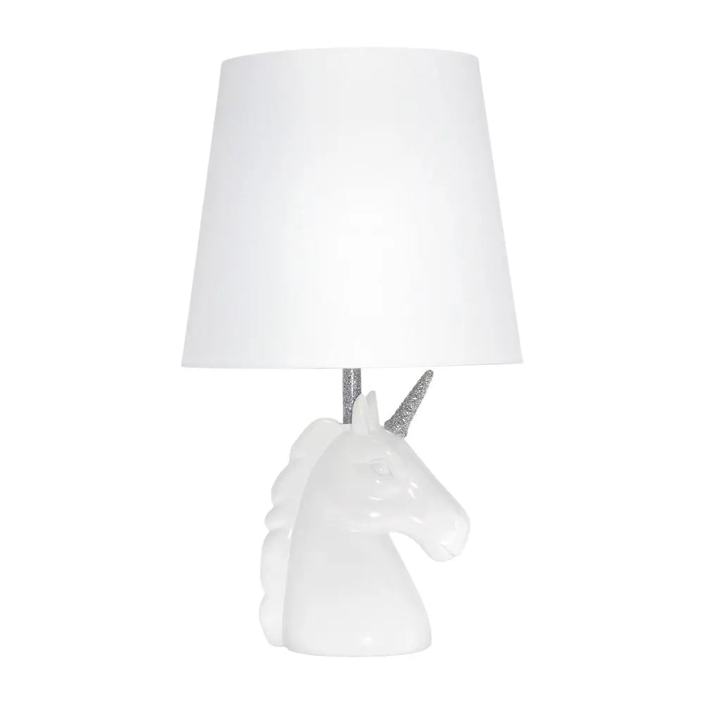 16" White And Silver Novelty Table Lamp LED With White Drum Shade