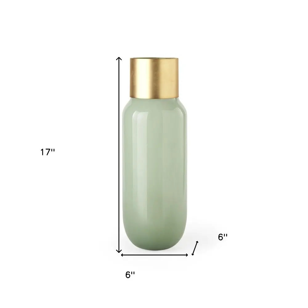 17" Green Abstract Cylinder Crystal Glass Table Vase
