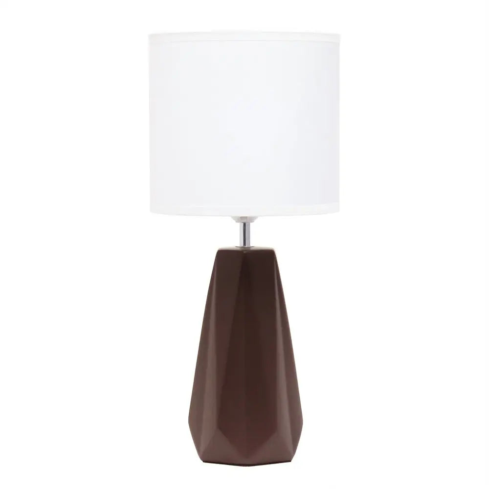 18" Brown And Silver Ceramic Geometric Table Lamp With White Drum Shade