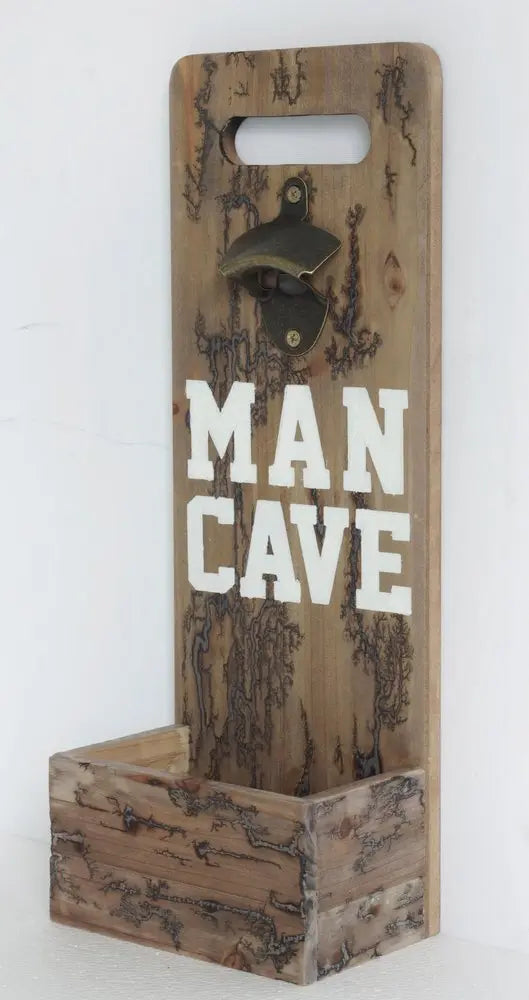18" Brown Rustic Solid Wood Man Cave Bottle Cap Catcher Wall Decor