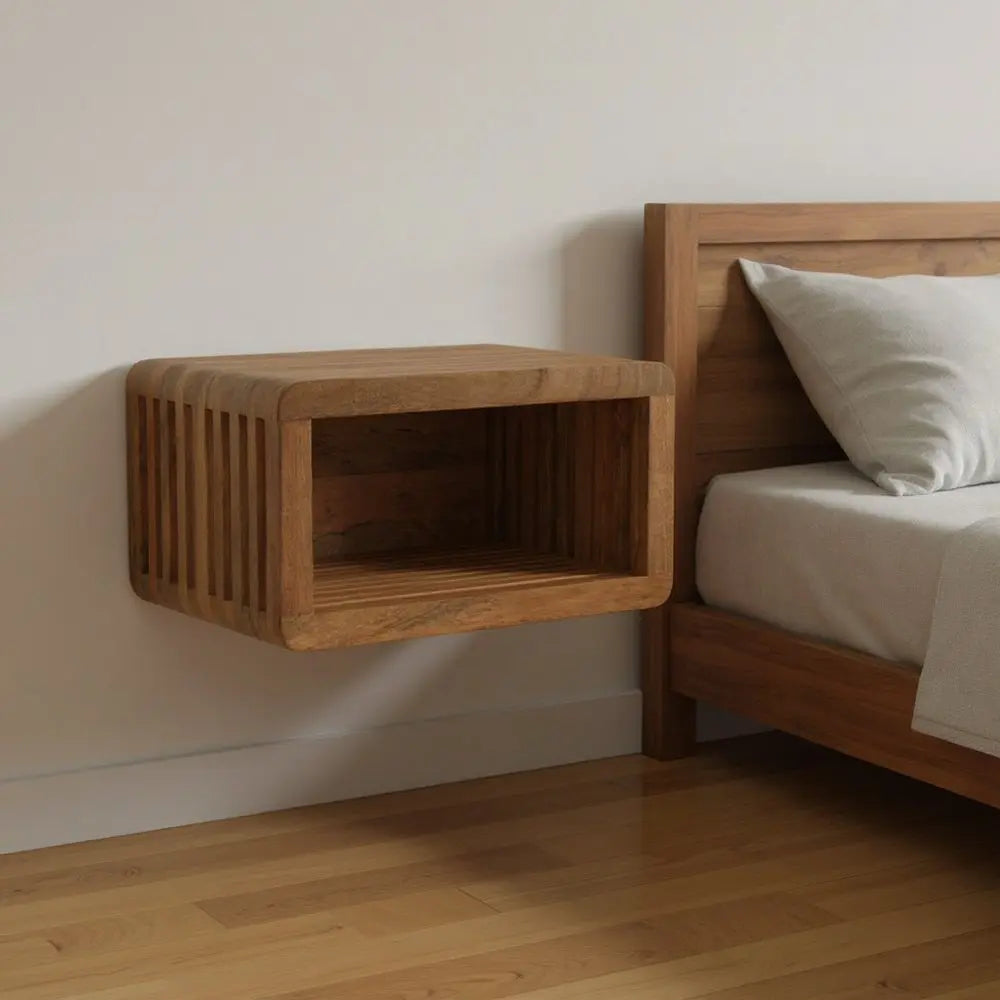 18" Brown Solid Wood Carved Geometric Floating Nightstand