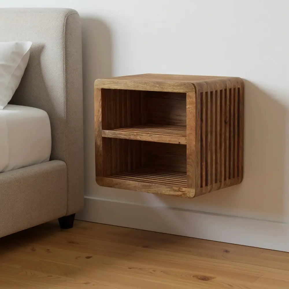 18" Brown Solid Wood Carved Geometric Floating Nightstand