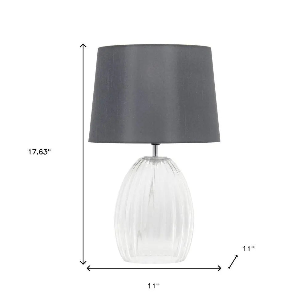 18" Clear Glass Novelty Table Lamp With Gray Drum Shade