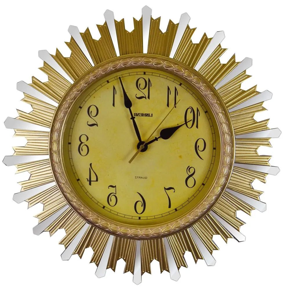 18" Gold And Silver Resin Silent Analog Sunburst Wall Clock