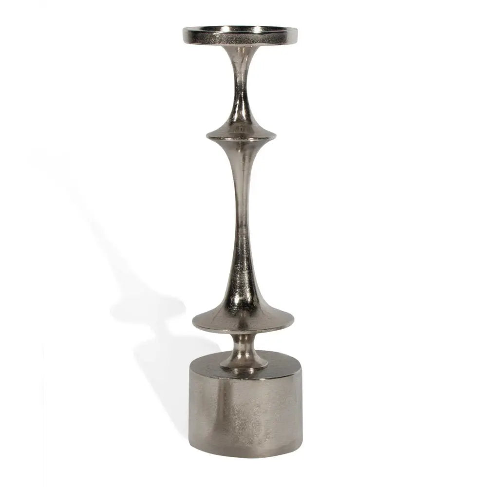 18" Silver Distressed Geometric Metal Tabletop Candle Holder