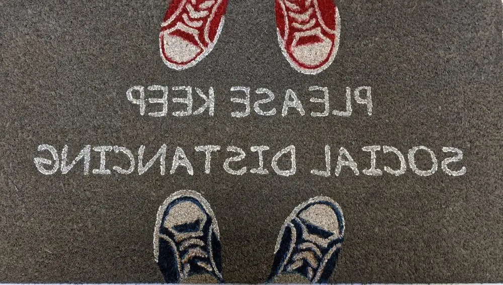 18" X 30" Gray Coir Please Keep Social Distancing Outdoor Door Mat - NOBLE HOME INTERIORS