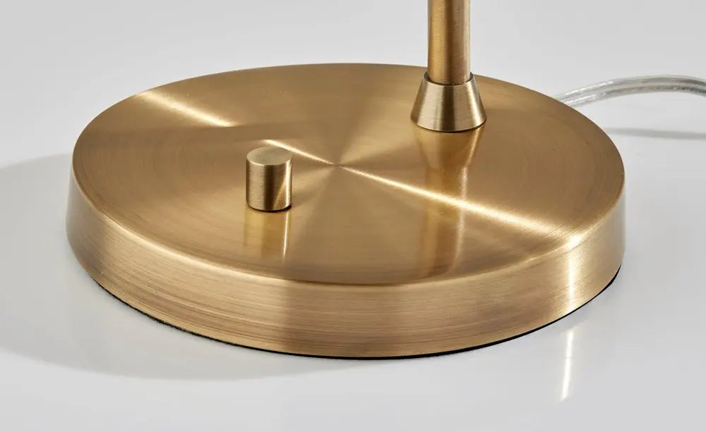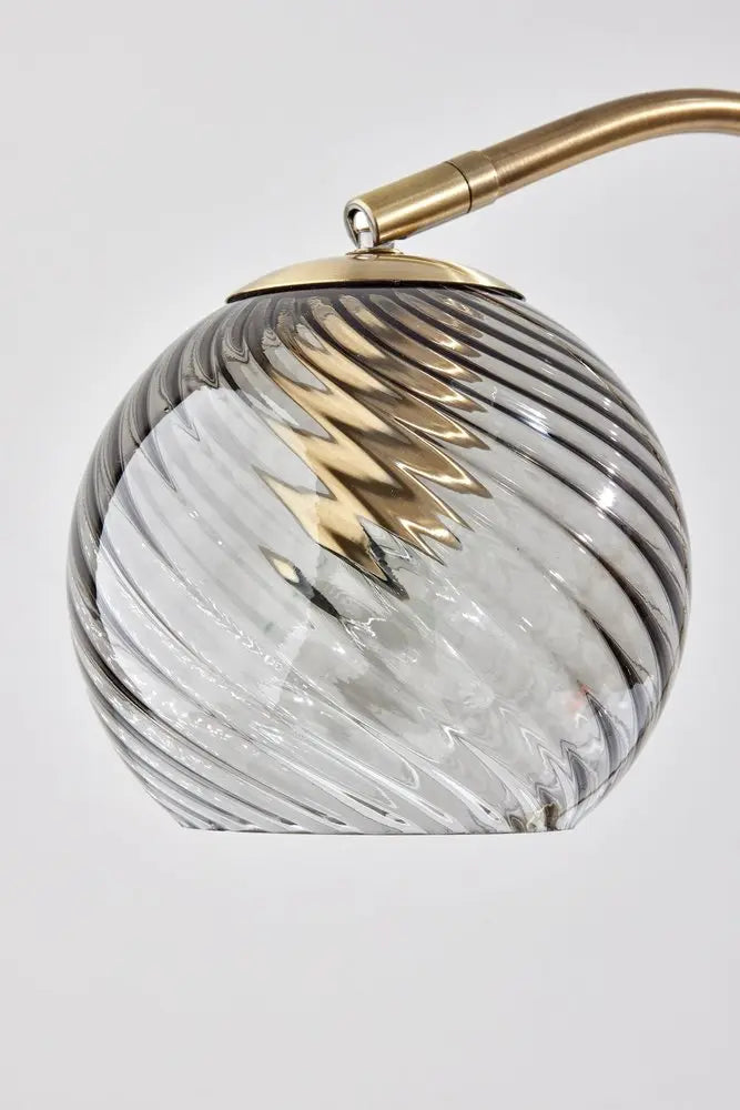 19" Antiqued Brass Metal Desk Lamp With Light Gray Swirl Globe Shade