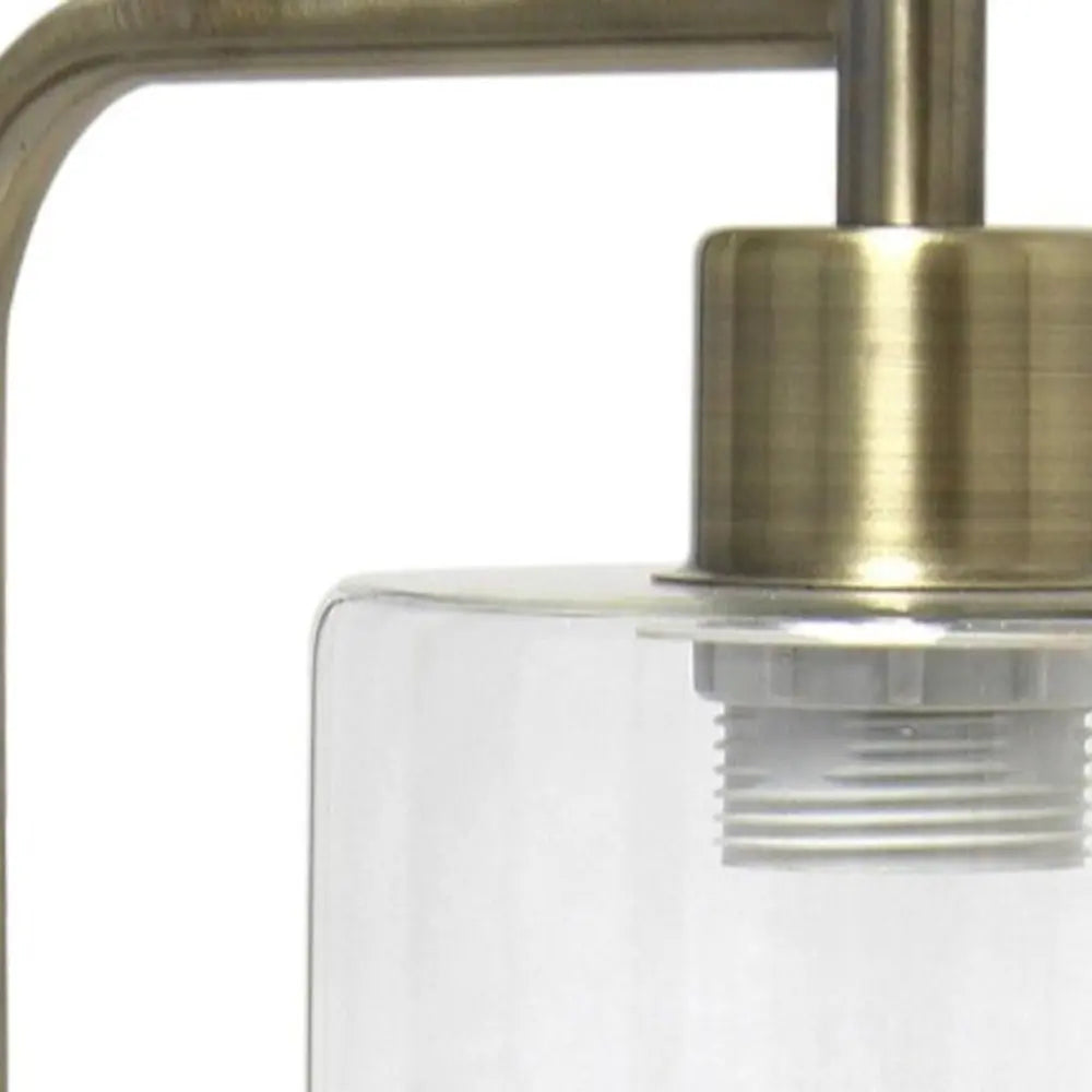 19" Antiqued Brass Metal Lantern Table Lamp LED With Clear Cylinder Shade