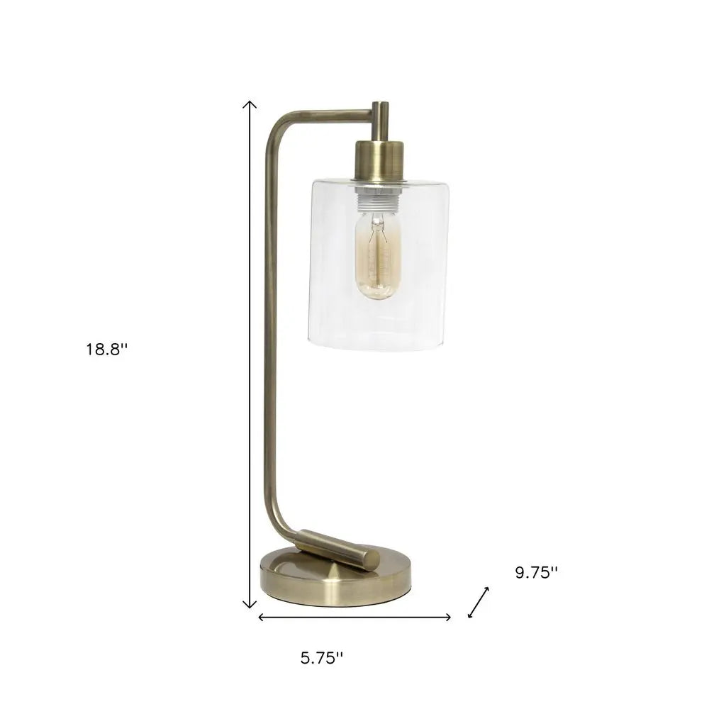 19" Antiqued Brass Metal Lantern Table Lamp With Clear Cylinder Shade