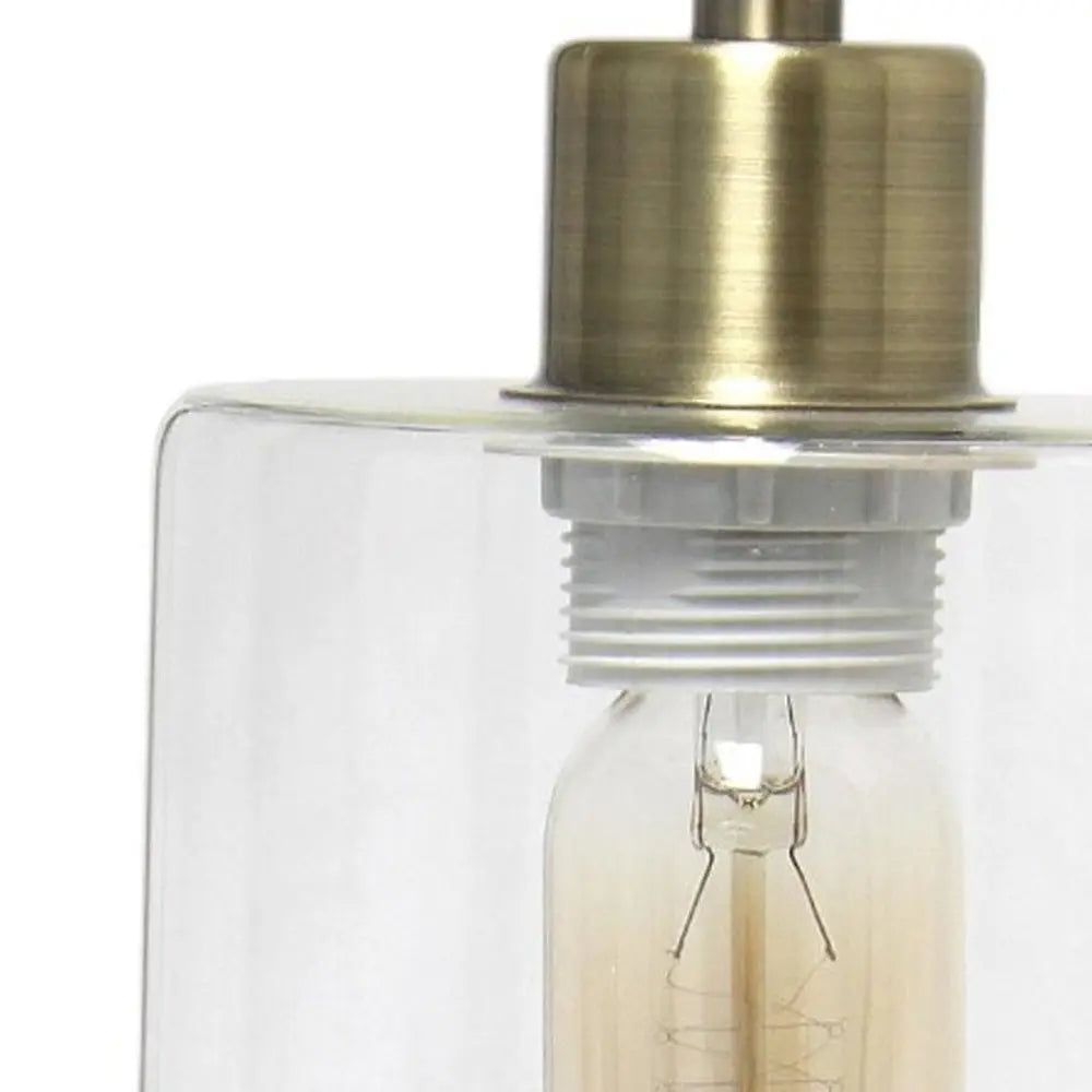 19" Antiqued Brass Metal Lantern Table Lamp With Clear Cylinder Shade