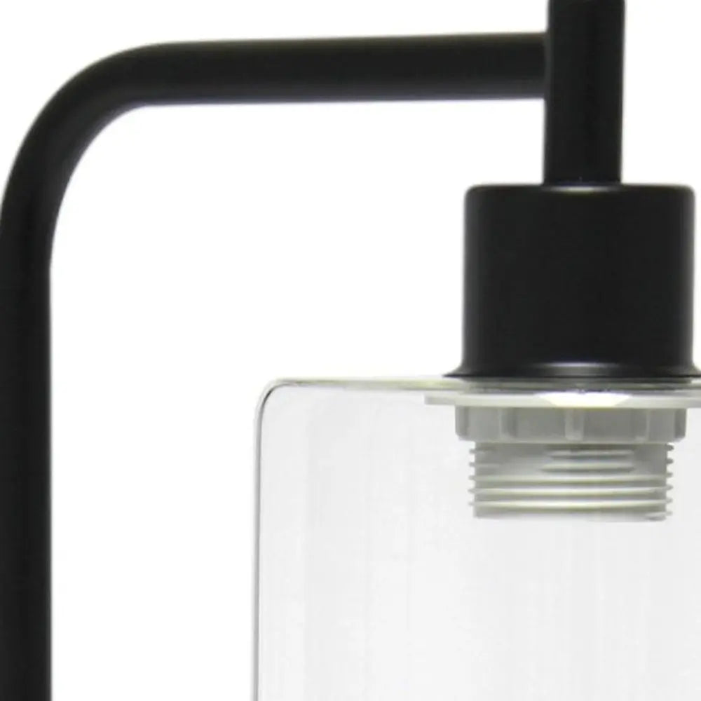 19" Black Iron Lantern USB Table Lamp LED With Clear Cylinder Shade