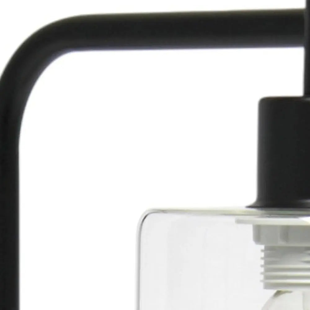 19" Black Iron Lantern USB Table Lamp With Clear Cylinder Shade