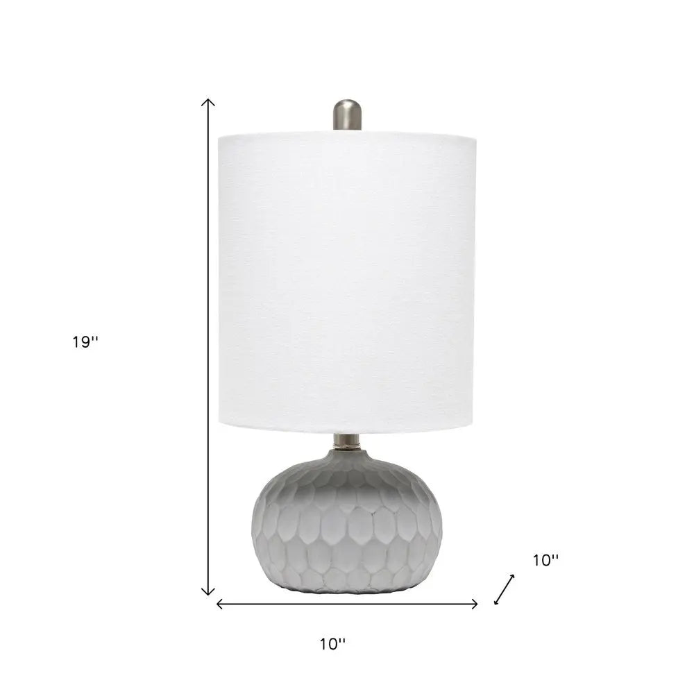 19" Gray Concrete Geometric Table Lamp With White Drum Shade