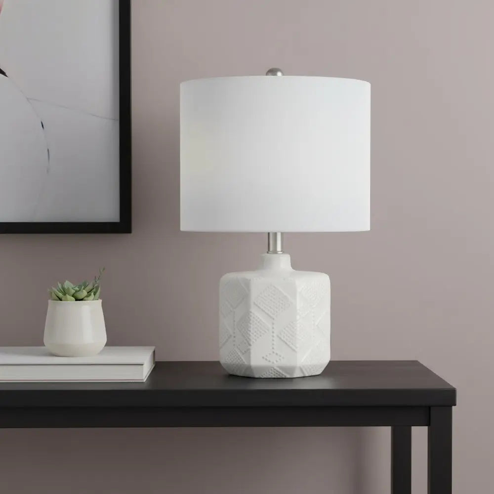 19" Off White Novelty Table Lamp With White Drum Shade
