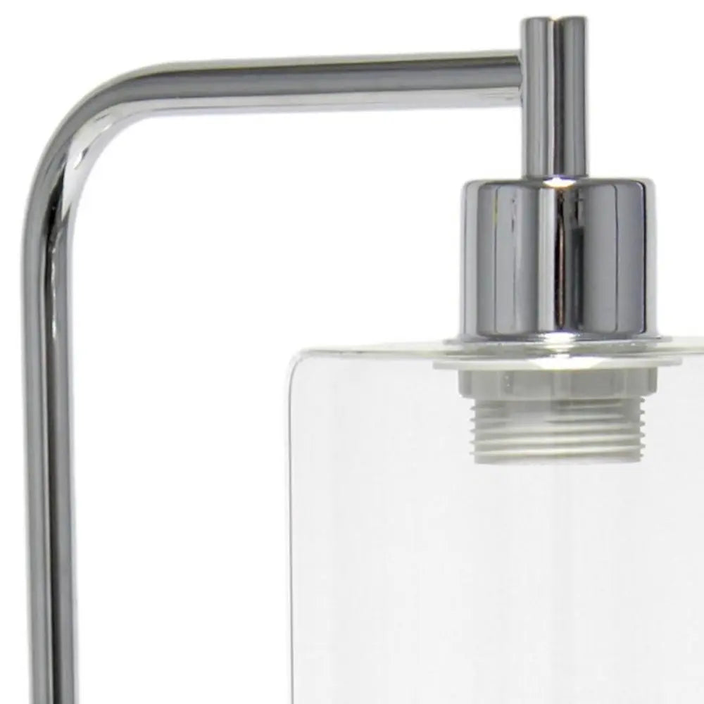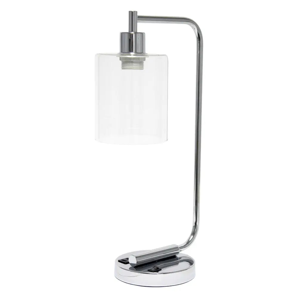 19" Silver Iron Lantern USB Table Lamp LED With Clear Cylinder Shade