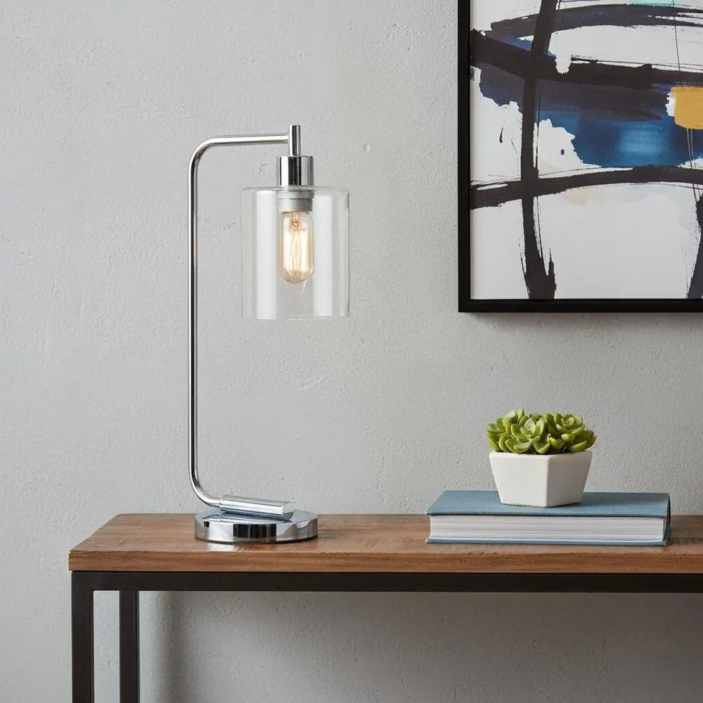 Truly a mix of design and functionality that doesn't compromise on style, this 19-inch silver iron lantern usb table lamp with clear cylinder shade will be a great addition to your space. The base of this lamp is made of silver iron. The clear cylinder glass shade is finishes this piece off nicely and symmetrically this standard table lamp is designed to provide general lighting to the area. The light that this lamp throws is soft and warm to elevate the look of most any space in your home. Bring some lite and good vibes into your space with this updated and stylishly designed lamp. 18.80-inch h x 5.75-inch w x 9.75-inch d.