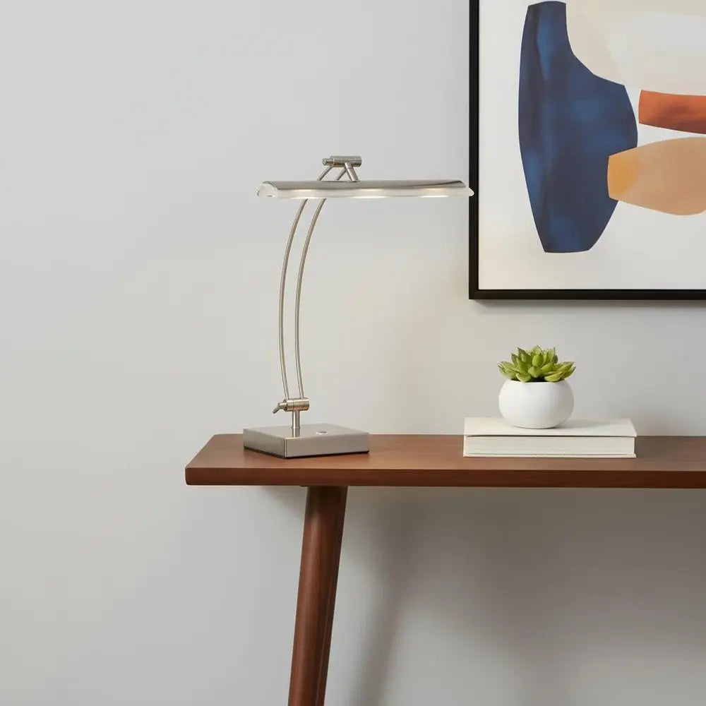 This 19-inch silver metal bankers lamp with silver is the perfect combination of design and function. The base of this lamp is made of metal finished in a silver tone. Known for it's green glass shade, this bankers style lamp is classically good looking. Integrated led technology is energy efficient and gives this lamp a cool and modern look high quality design makes this a great lamp for not only lighting, but accenting a room with style. Bring some lite and good vibes into your space with this updated and stylishly designed lamp. 19-inch H x 15-inch W x 19-inch D