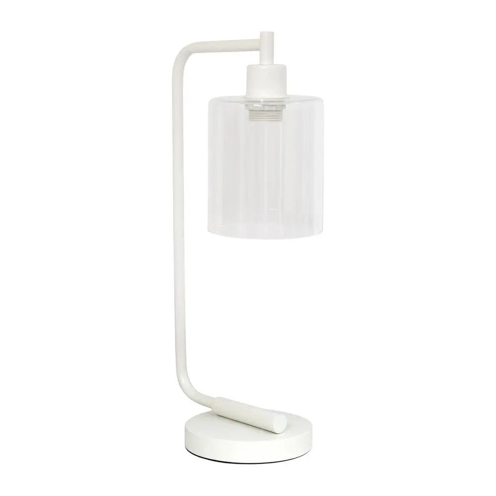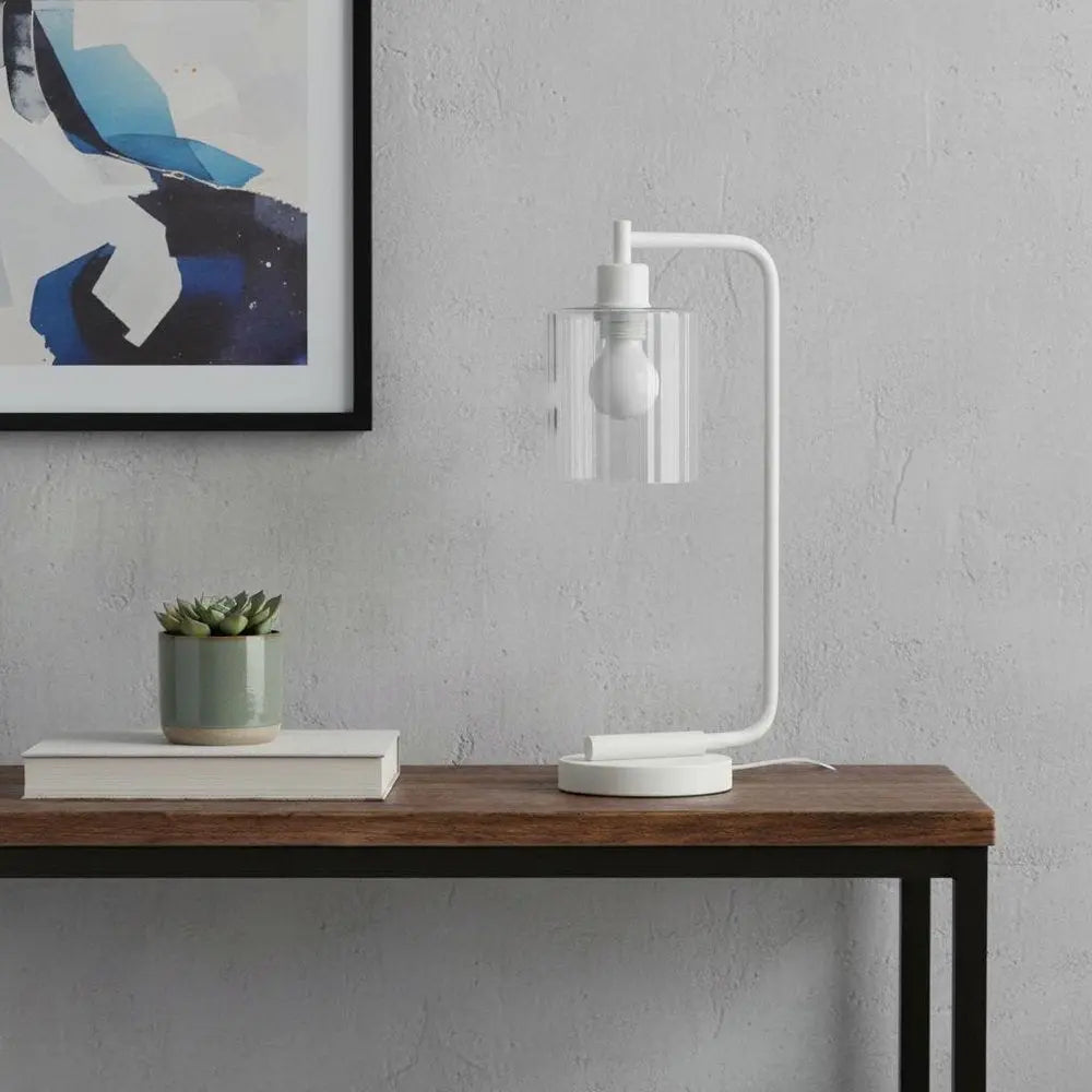 19" White Iron Lantern Table Lamp LED With Clear Cylinder Shade
