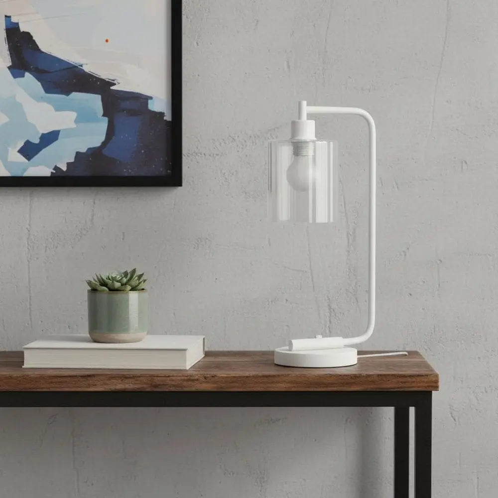 19" White Iron Lantern Table Lamp LED With Clear Cylinder Shade