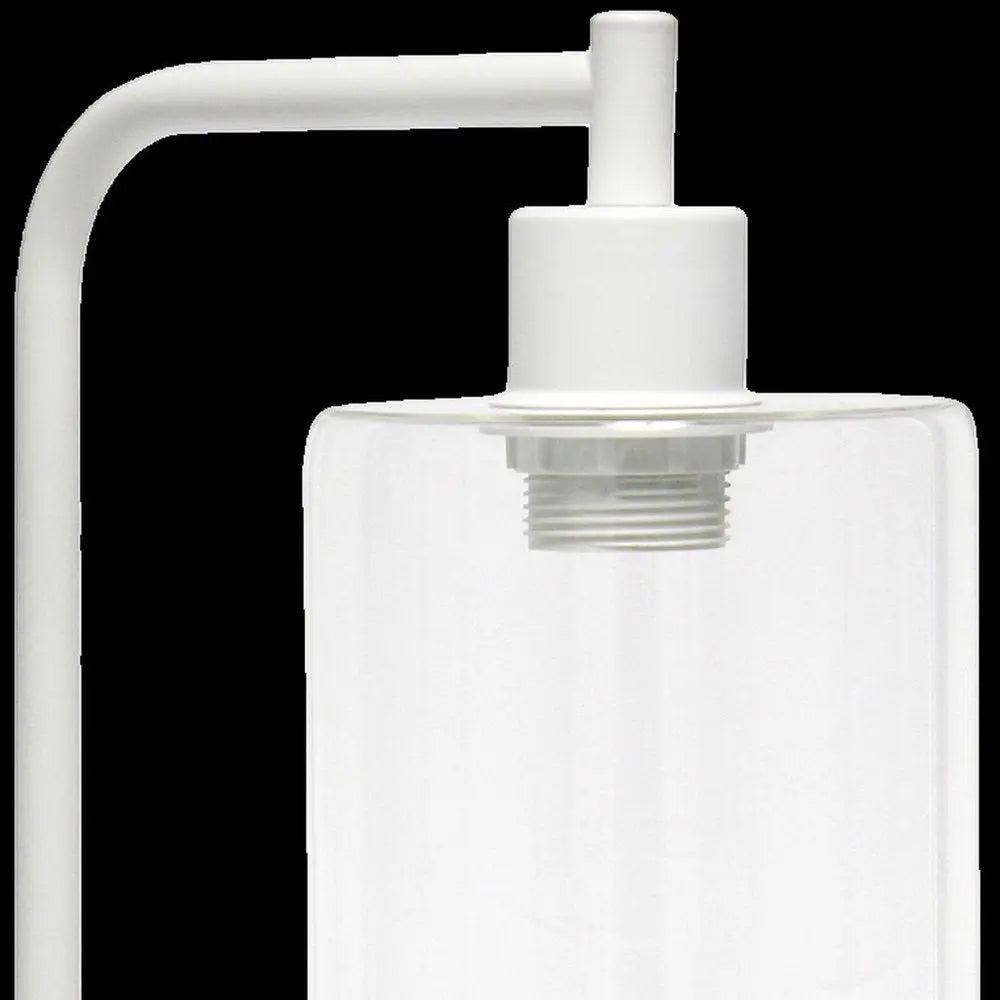 19" White Iron Lantern USB Table Lamp LED With Clear Cylinder Shade