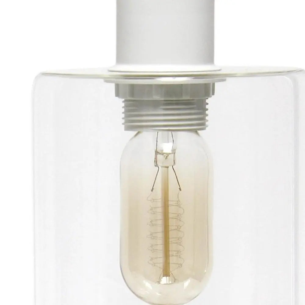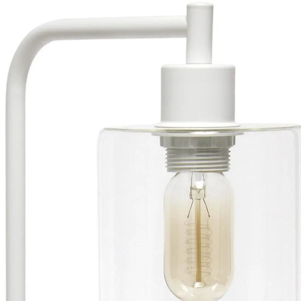 Truly a mix of design and functionality that doesn't compromise on style, this 19-inch white iron lantern usb table lamp with clear cylinder shade will be a great addition to your space. The lamp is made of sturdy iron and features a white color. The clear shade has a cylinder shape and is made of glass, which makes it a perfect choice. This standard table lamp is designed to provide general lighting to the area. Use this lamp anywhere and elevate the look of the whole space. The perfect lamp to create just the right natural and soothing light in your space. 18.80-inch h x 5.75-inch w x 9.75-inch d.