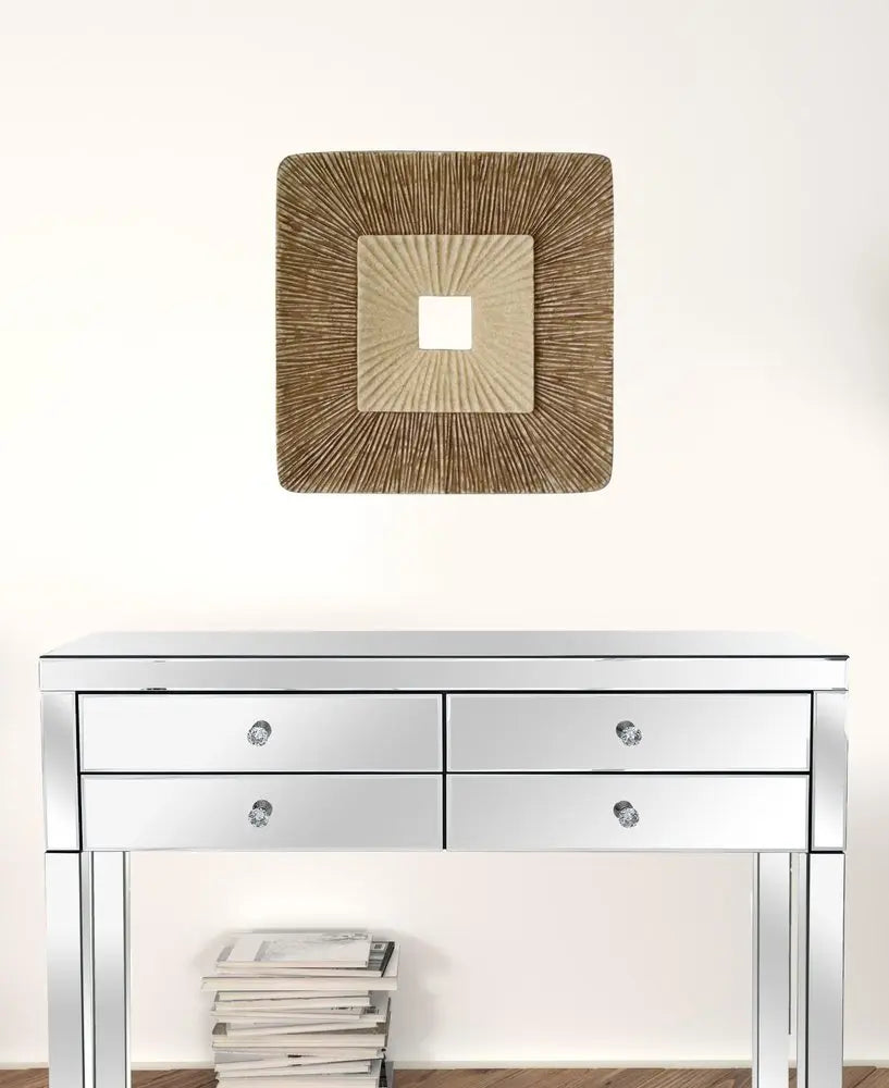 19" X 19" X 2.5" Brown Concave Square Double Layer Ribbed Wall Plaque