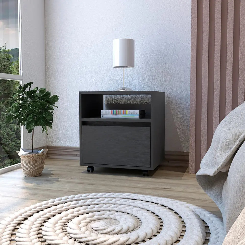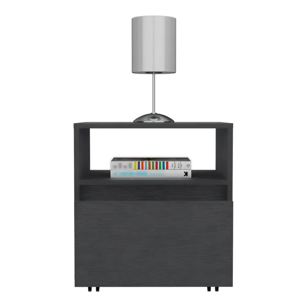 20" Black Wood One Drawer Nightstand