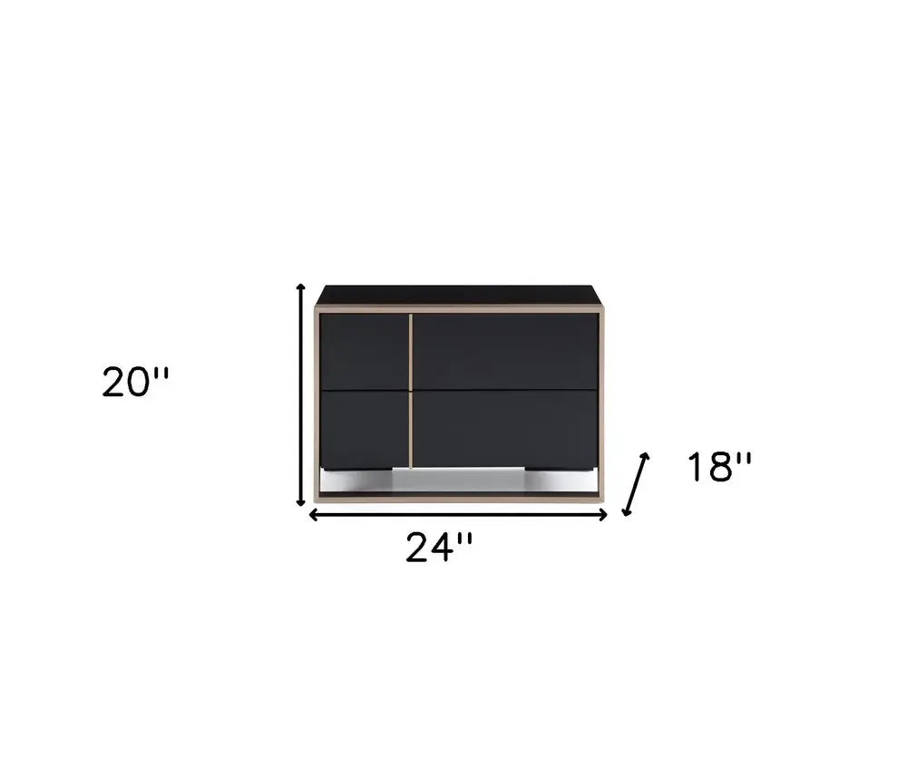 Good looking design and practical styling meet to form this 20-inch black wood two drawer nightstand. Sturdy and durable construction from manufactured wood ensures this trusty bedside table is built to last. The piece has 2 drawers to store your bedtime essentials close to you as you rest. The unsung hero of the bedroom, this nightstand is perfect for keeping a glass of water, lamp, alarm clock, jewelry, and more, close by and easily accessible. Nightstands are obviously great beside the bed but can be used just as easily to help battle clutter in your living room, hallway, office, or dining room. 20-inch h x 24-inch w x 18-inch d.