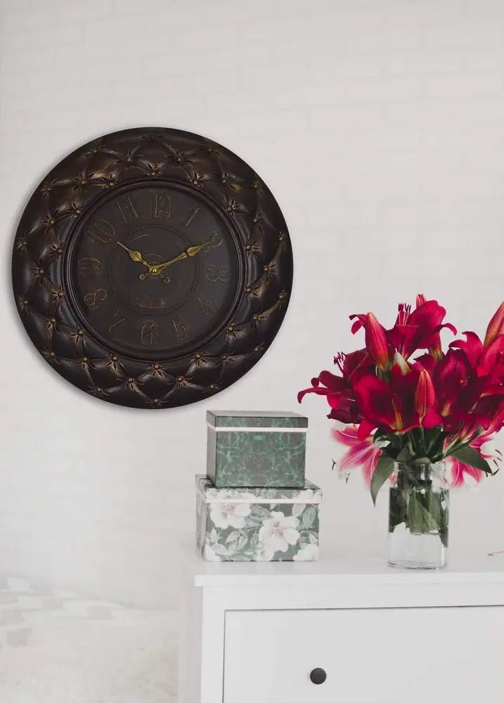 20" Brown And Gold Heavy Duty Plastic Silent Analog Round Wall Clock