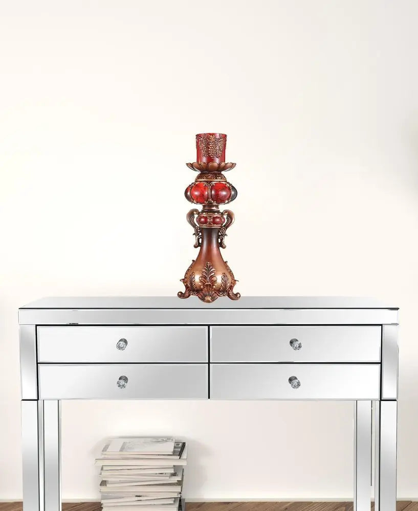 20" Brown and Red Faux Marble Tabletop Candle Holder and Candle