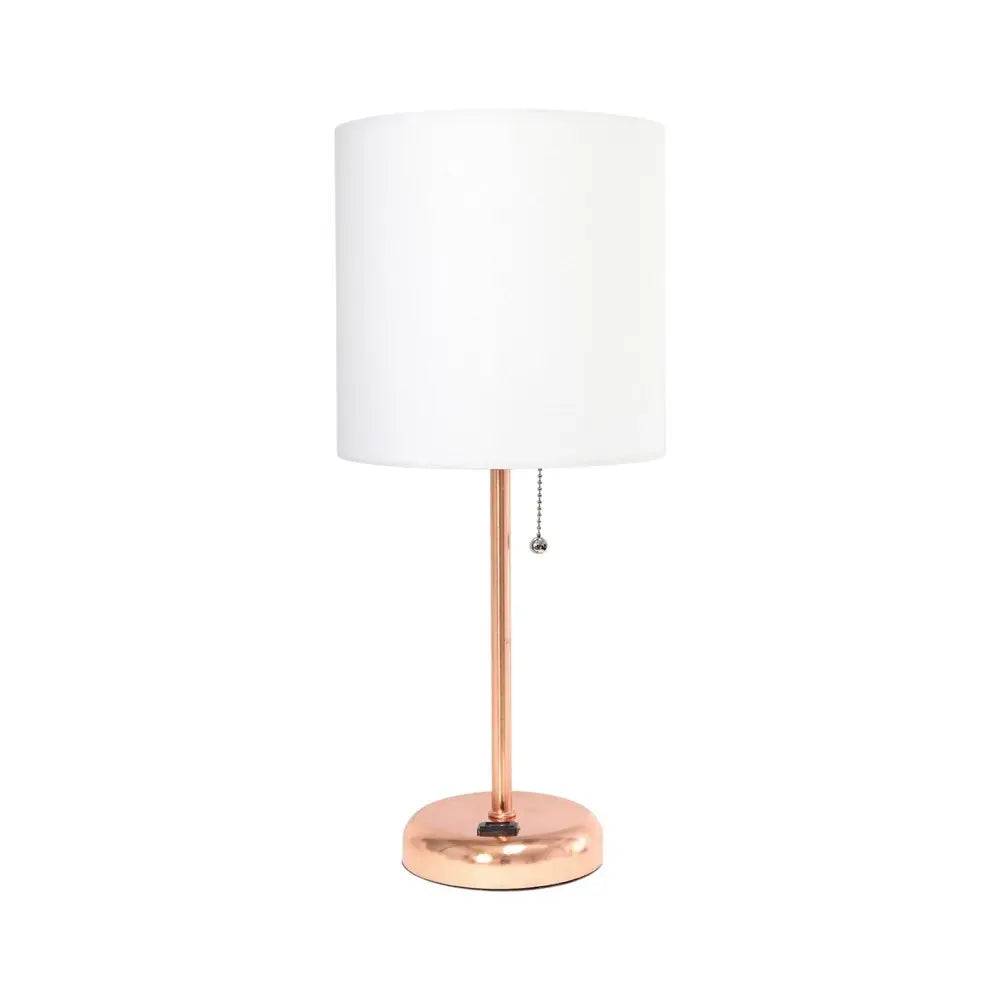 20" Rose Gold Metal Table Lamp LED With White Drum Shade