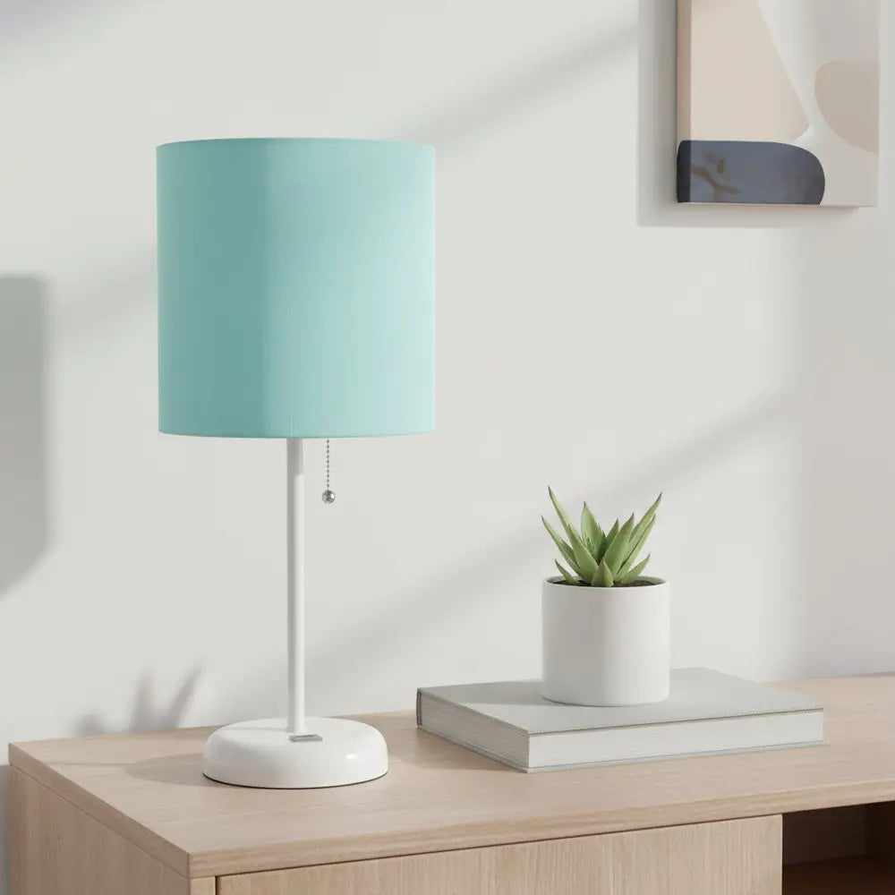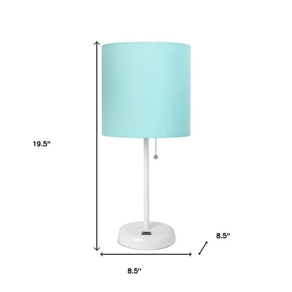 20" White Metal USB Table Lamp LED With Aqua Drum Shade