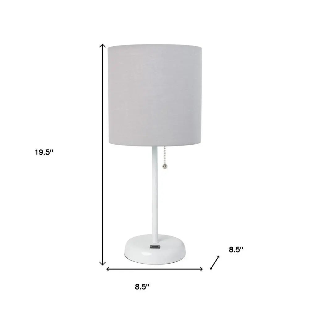 20" White Metal USB Table Lamp LED With Gray Drum Shade