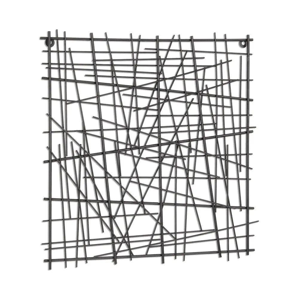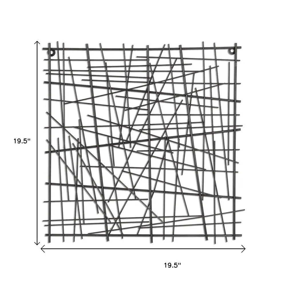 20" X 20" Black Abstract Lines Metal Square Hanging Dimensional Sculpture