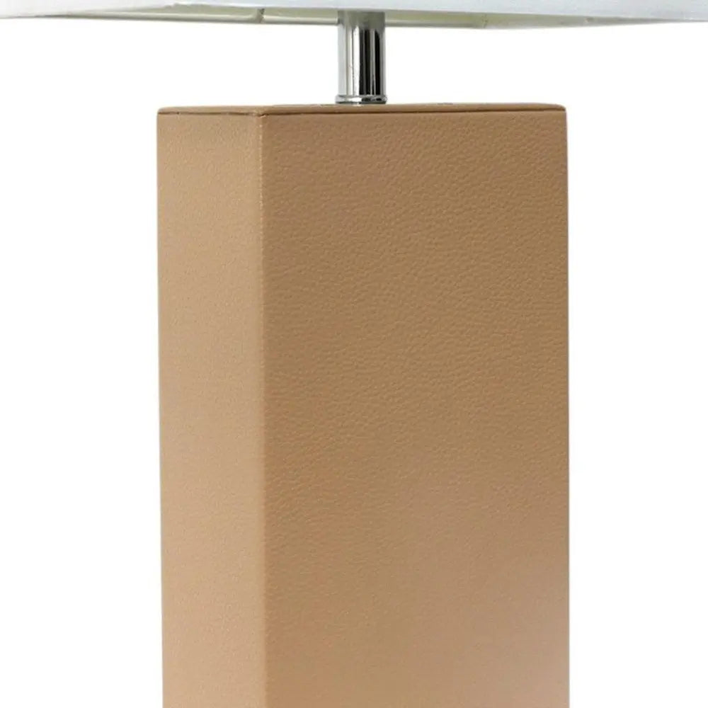 21" Beige Faux Leather Table Lamp LED With White Shade