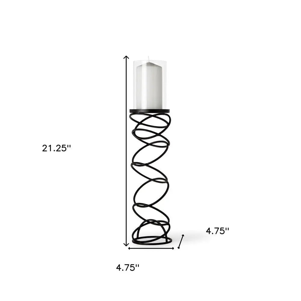 21" Black Geometric Glass And Metal Tabletop Pillar Candle Holder