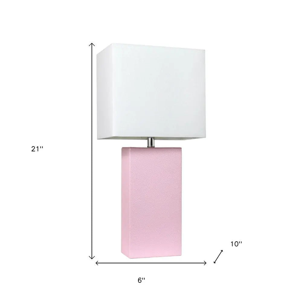 21" Blush Faux Leather Table Lamp LED With White Shade