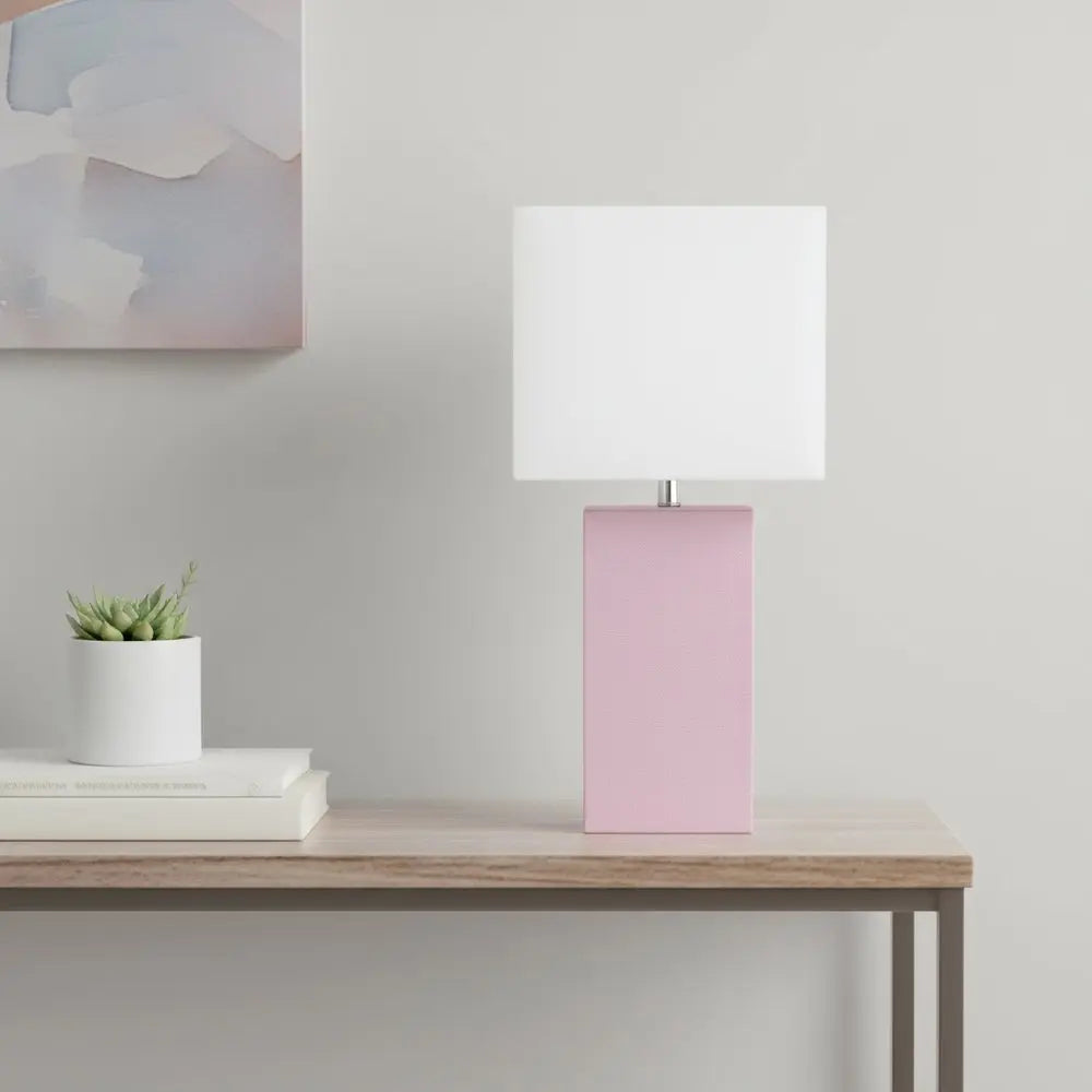 21" Blush Faux Leather USB Table Lamp LED With White Shade