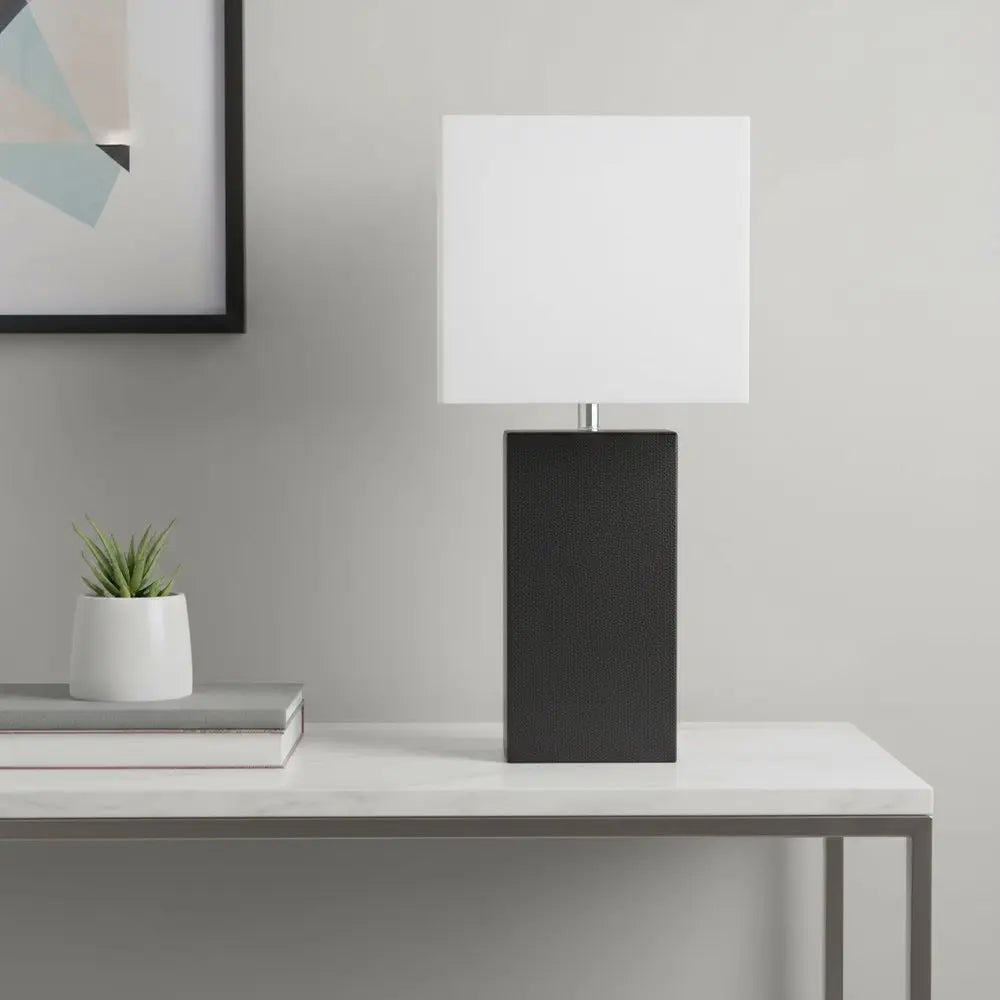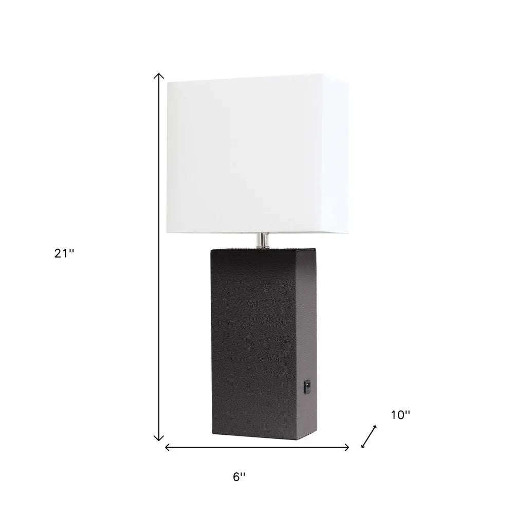 21" Brown Faux Leather USB Table Lamp With White Shade