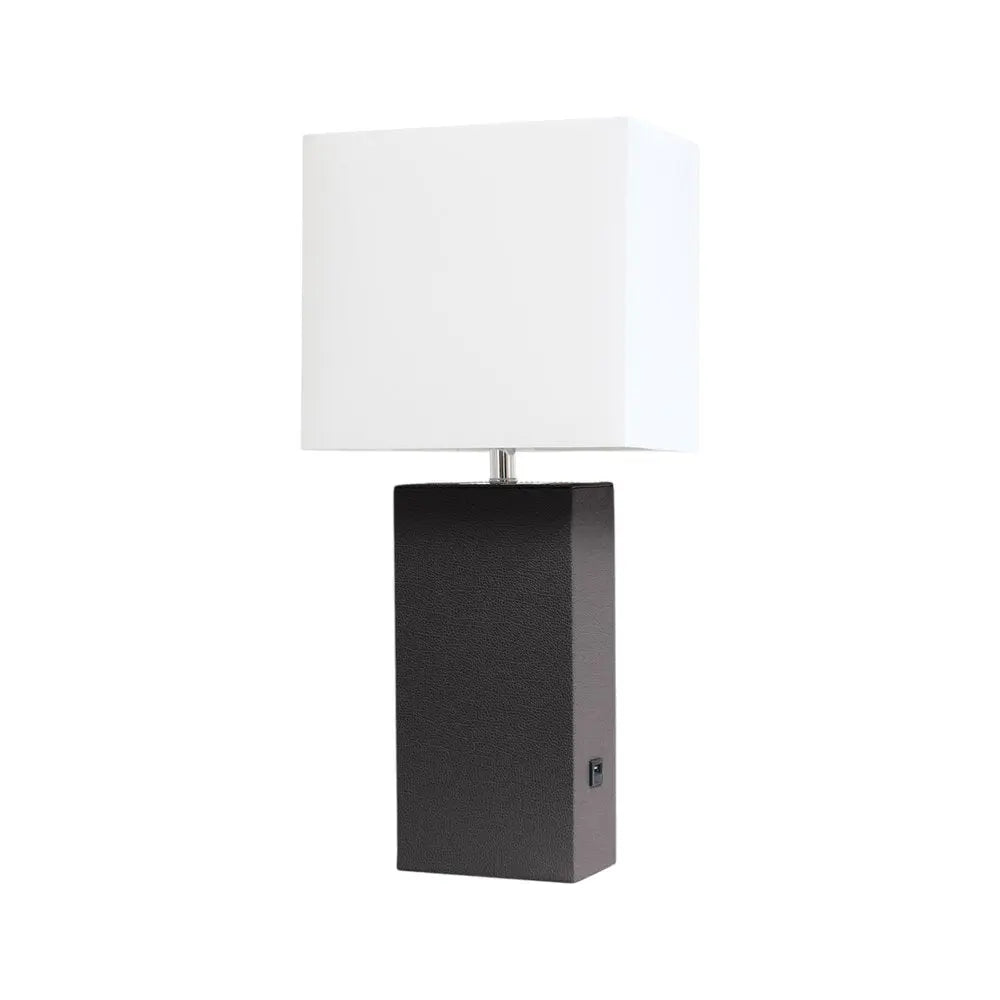 21" Espresso Faux Leather USB Table Lamp LED With White Shade