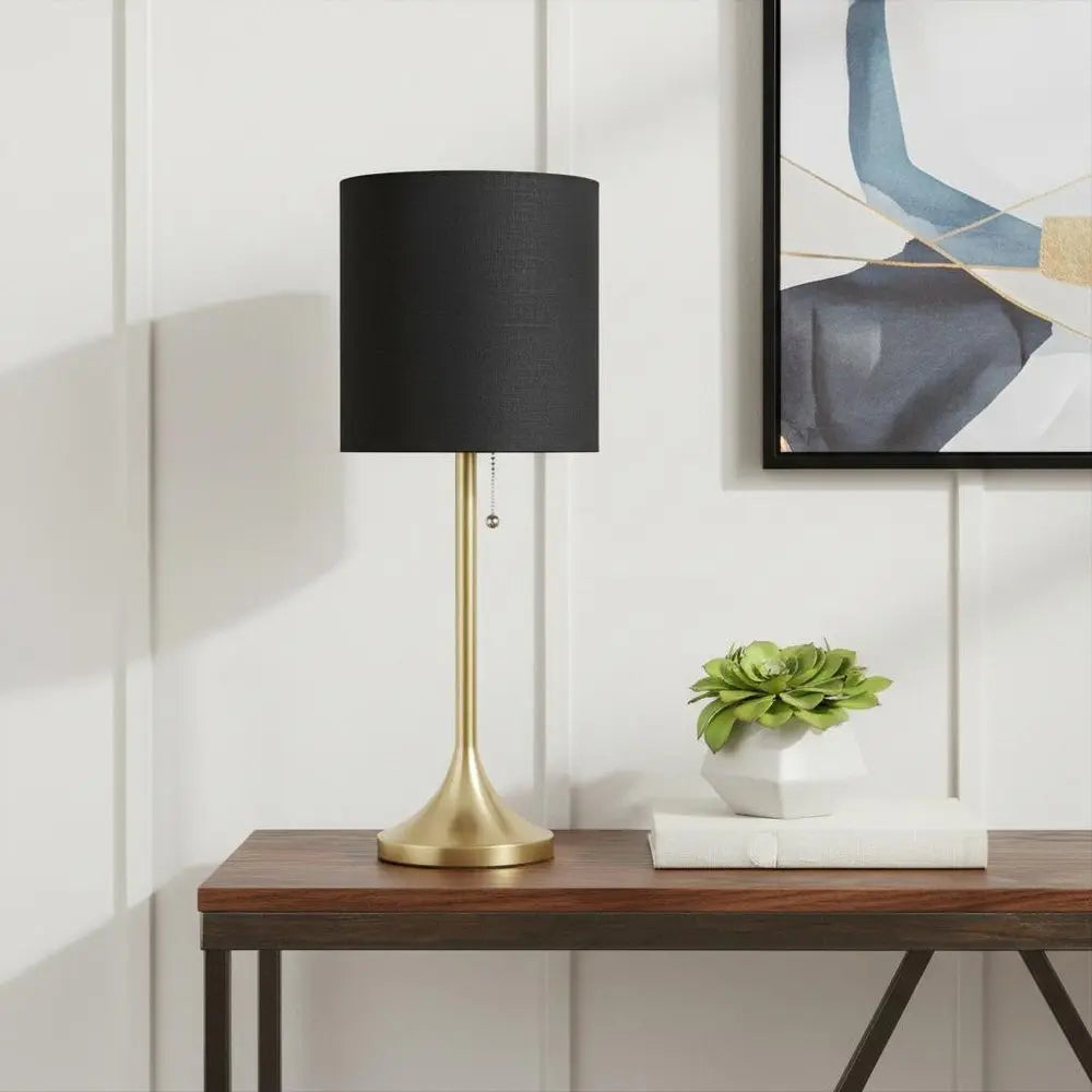 21" Gold Metal Table Lamp With Black Drum Shade